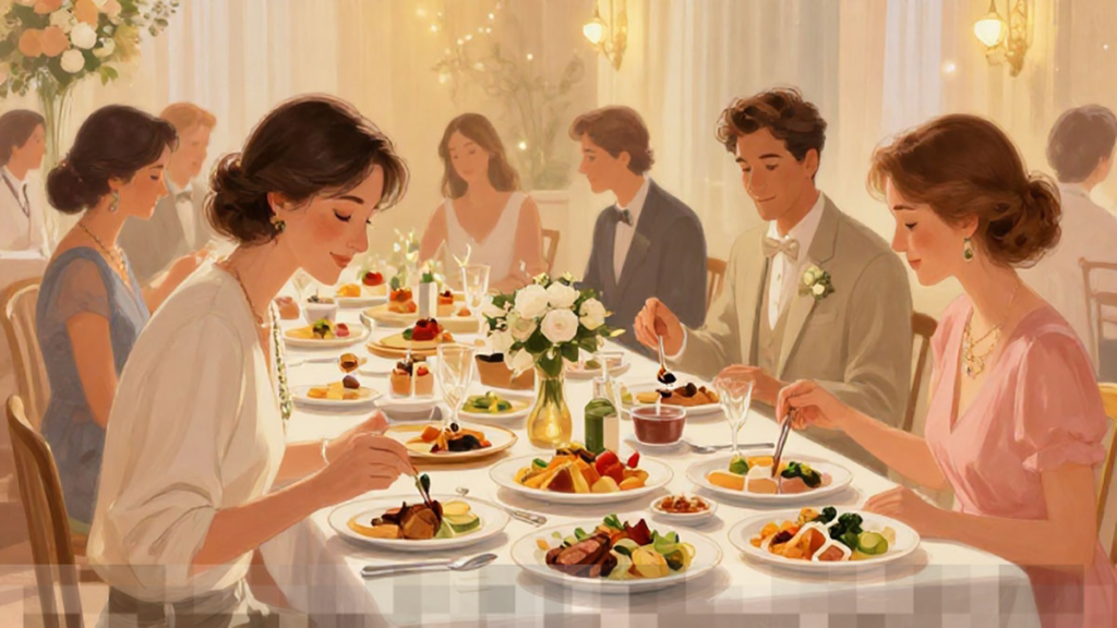 Strategi makan yang efektif di pesta pernikahan sangat bergantung pada kesadaran diri. Hindarilah makan sambil berdiri atau berbincang-bincang tanpa fokus. Ambil waktu untuk duduk dan benar-benar menikmati setiap suapan. Kunyahlah makanan dengan perlahan agar sinyal kenyang dapat muncul dengan optimal. Jika ada yang menawarkan tambahan makanan, jangan merasa tertekan untuk menerimanya. Anda berhak menolak dengan sopan dan menyampaikan bahwa Anda sudah merasa cukup kenyang.